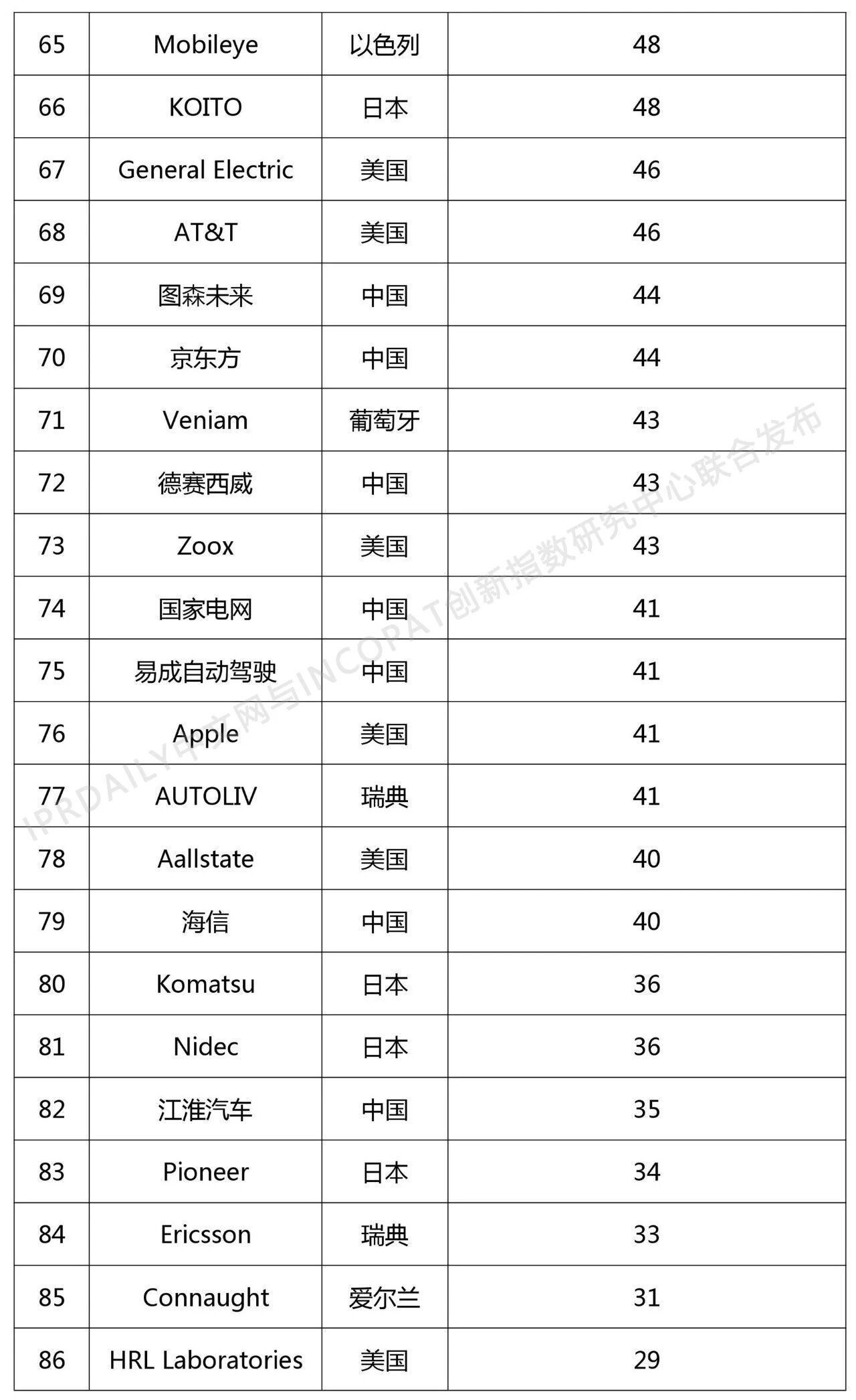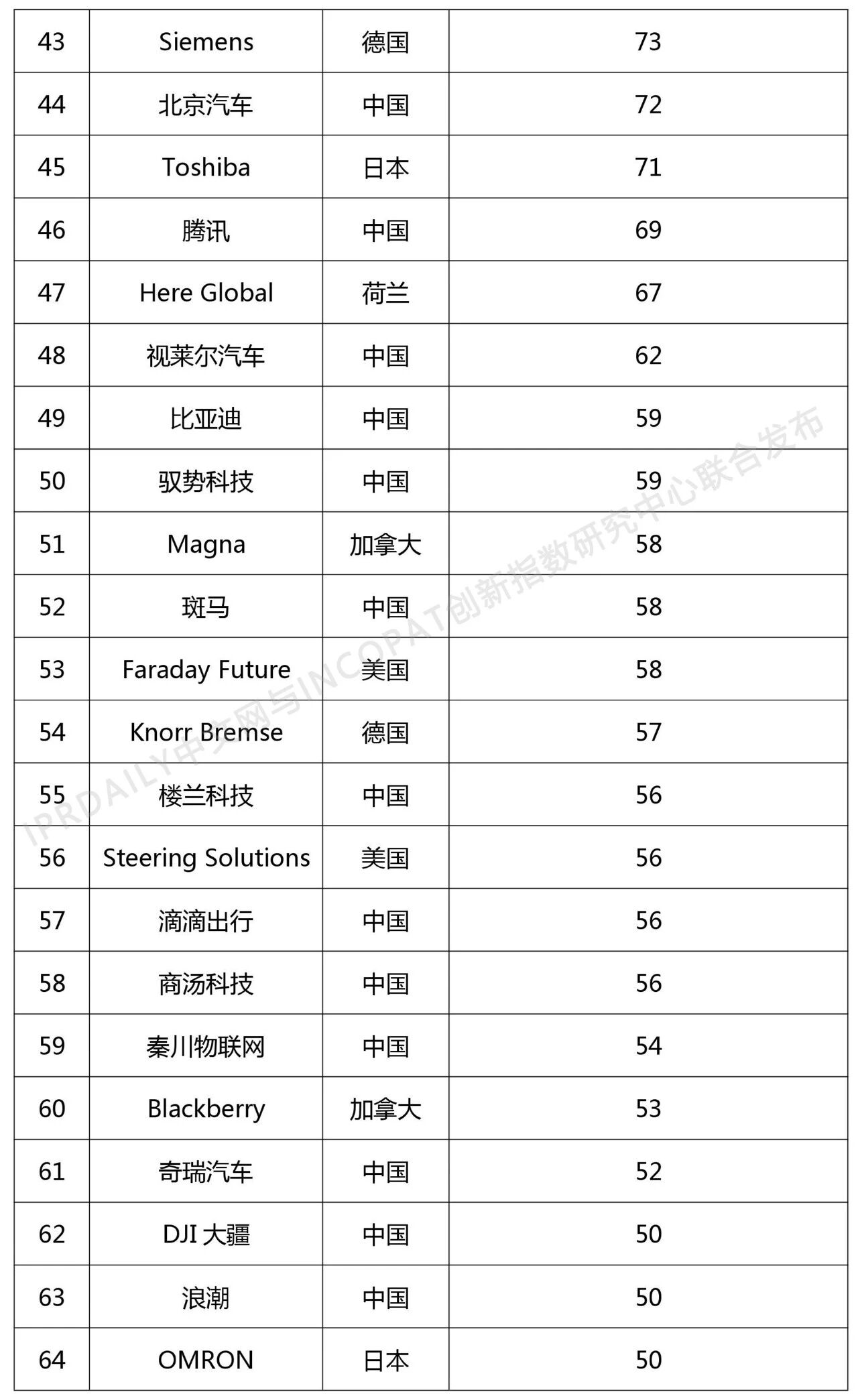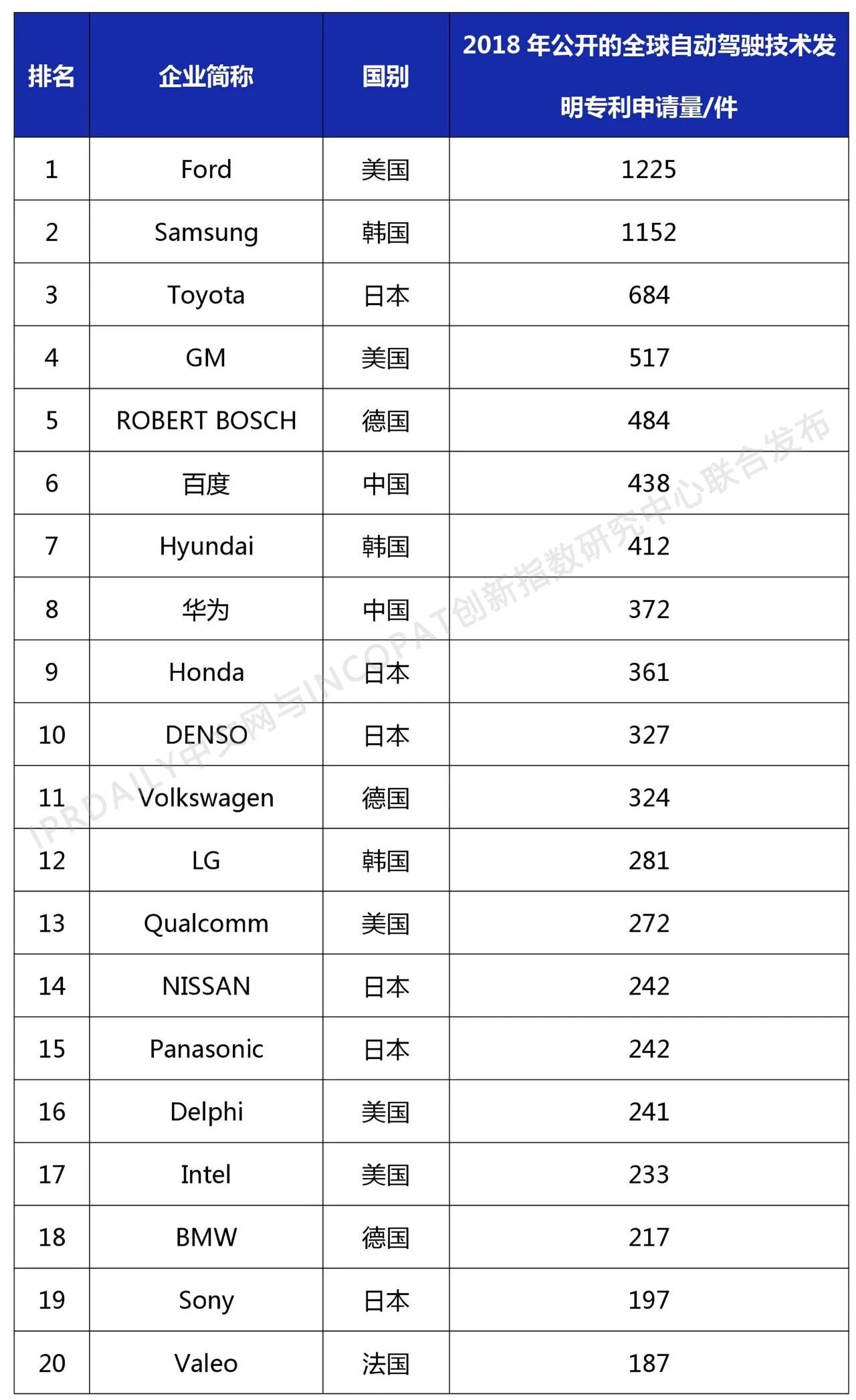 近日,全球影响力的知识产权媒体IPRdaily联合incoPat创新指数研究中心发布“2018年全球自动驾驶技术发明专利排行榜(TOP 100)”,数据范围为截止2018年1月1日至2018年12月31日,2018年公开的全球自动驾驶技术发明专利申请数量。