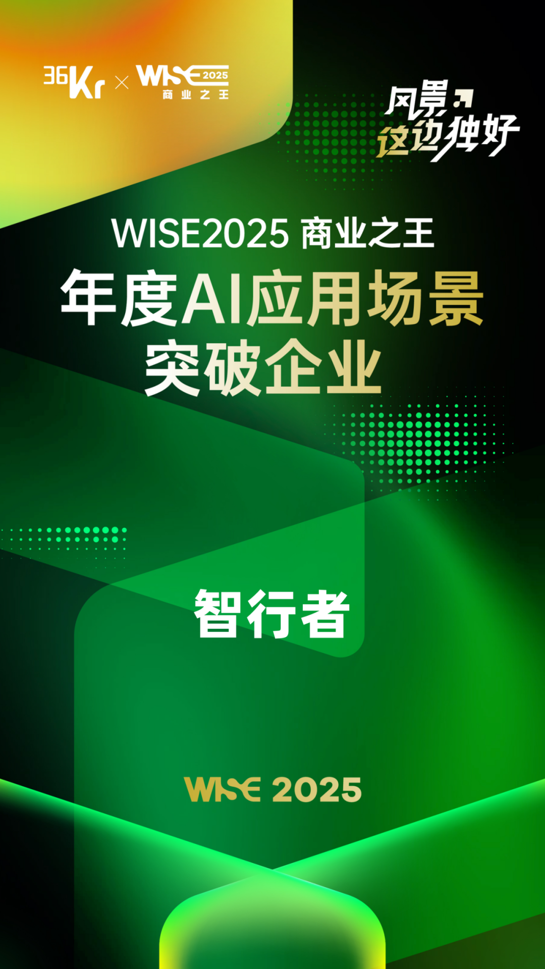 日前,在36氪「WISE2025 商业之王 年度企业」中,智行者凭借在AI与无人驾驶应用场景中的持续深耕与突破,荣获「年度AI应用场景突破企业」。这一荣誉,是对公司创新实力的认可,也印证了智行者多年来所坚守的实践理念——不追逐悬浮于空中的技术叙事,而是俯身进入产业深处,将无人驾驶技术转化为可衡量、可复制、可普惠的真实生产力。
